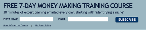 I'm sure you've come across something similar to the opt-in box below some time or other. This is one example of how to offer your no-cost item. In this case, the surfer is asked to enter his contact details in exchange for daily 30 minute training for a week.